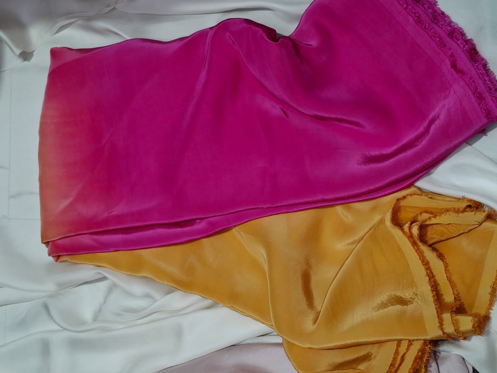 Yellow + Pink Double Shade Natural Crepe Silk